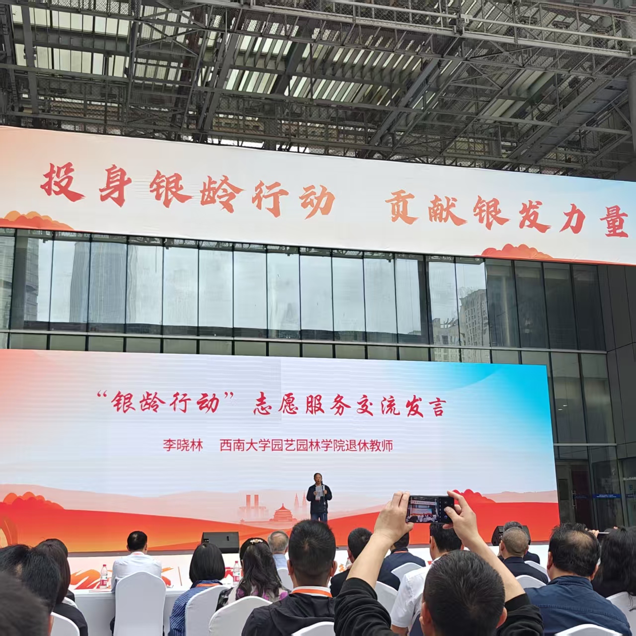 4月15日,由重庆市老龄工作委员会办公室、重庆市民政局、中共重庆市委社会工作部等部门主办的2025年重庆市“银龄行动”主题活动在杨家坪步行街文化广场正式启动。PA视讯“西大红”五老服务团成员、园艺园林学院退休教师李晓林作为老年志愿者代表受邀发言,分享其扎根乡村、科技助农的感人故事,展现了新时代“银发力量”的使命与担当。 李晓林老师从事果树科研、教学和生产管理工作36年,退休后积极响应国家乡村振兴战略...