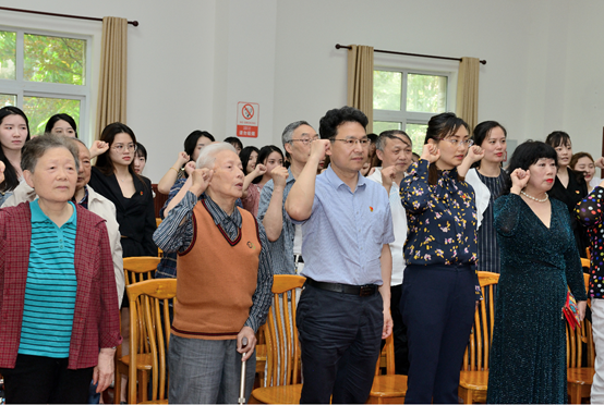 随后,党员们面对鲜艳的党旗重温入党誓词,朗朗誓言,表达了老少两代共产党员共同的信念和决心。