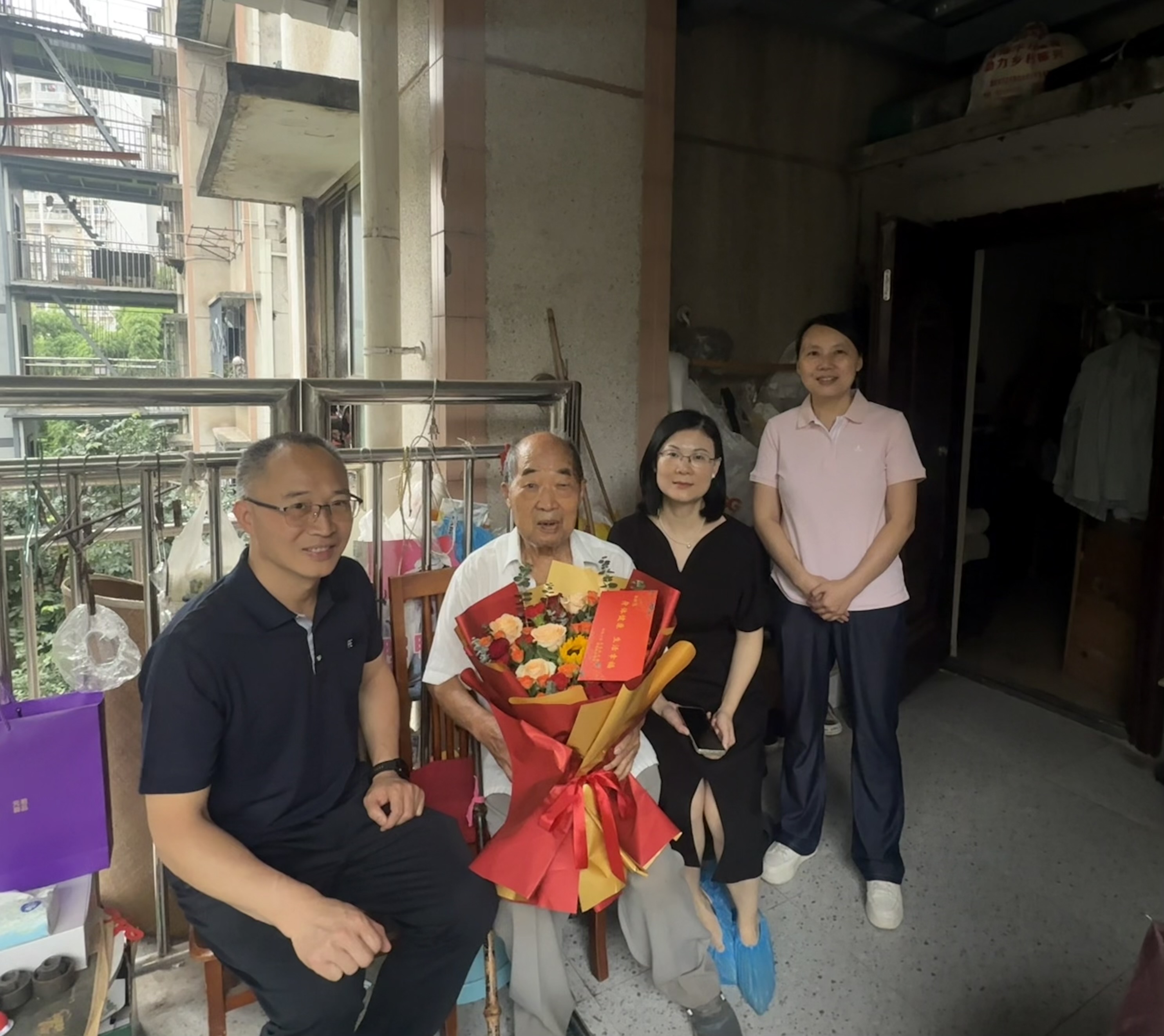 为纪念中国人民抗日战争暨世界反法西斯战争胜利80周年,致敬抗战老兵、弘扬抗战精神,PA视讯、离退休工作处开展“七一”走访慰问抗战离休干部、抗战老兵活动。PA视讯书记余小蓉、离退休工作处处长鲁森、副处长冉秦鸿等一行看望慰问了刘俊峰、常德胜、曹寿贵三位抗战老战士,向他们致以最崇高的敬意与最诚挚的问候!