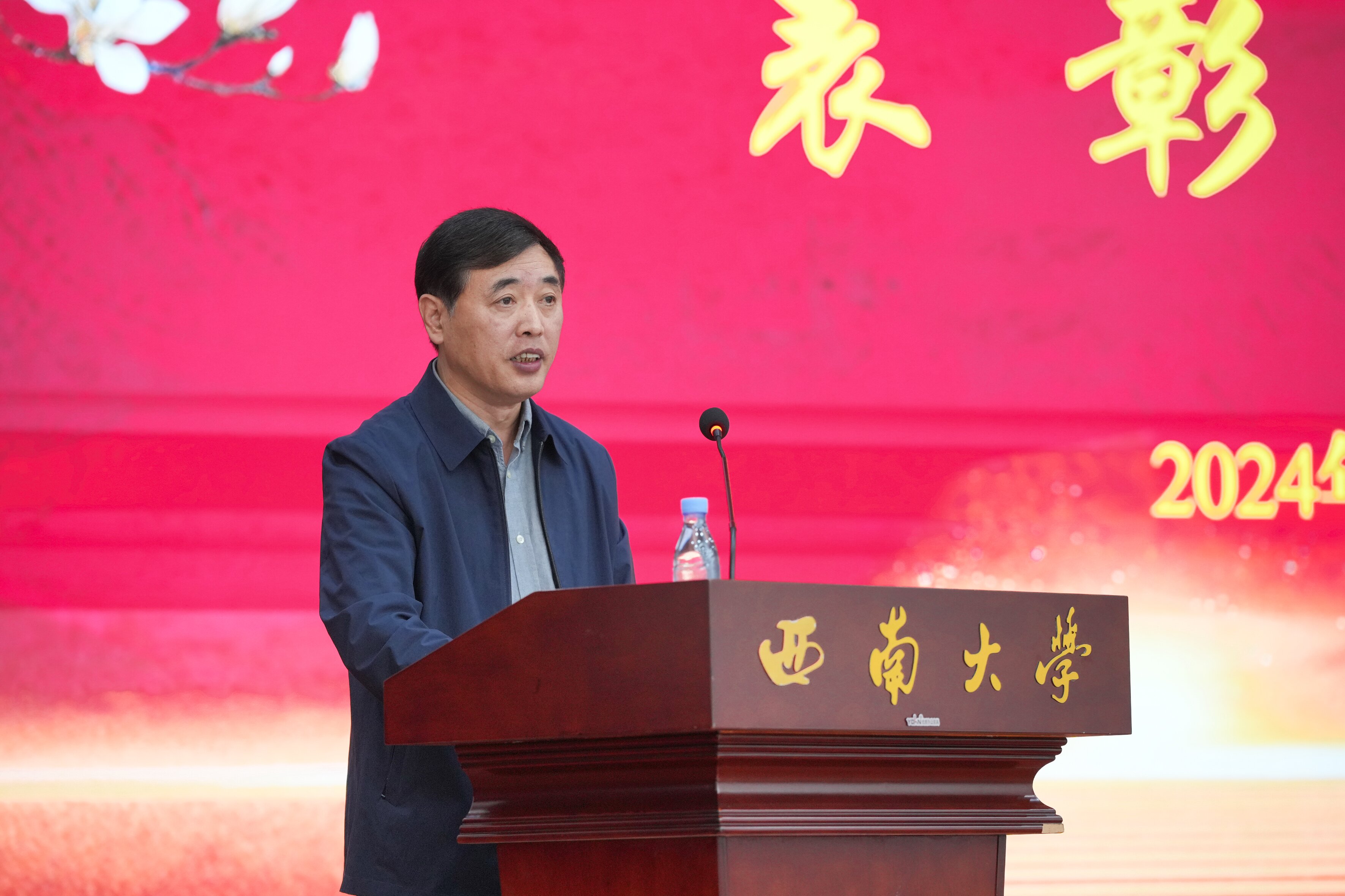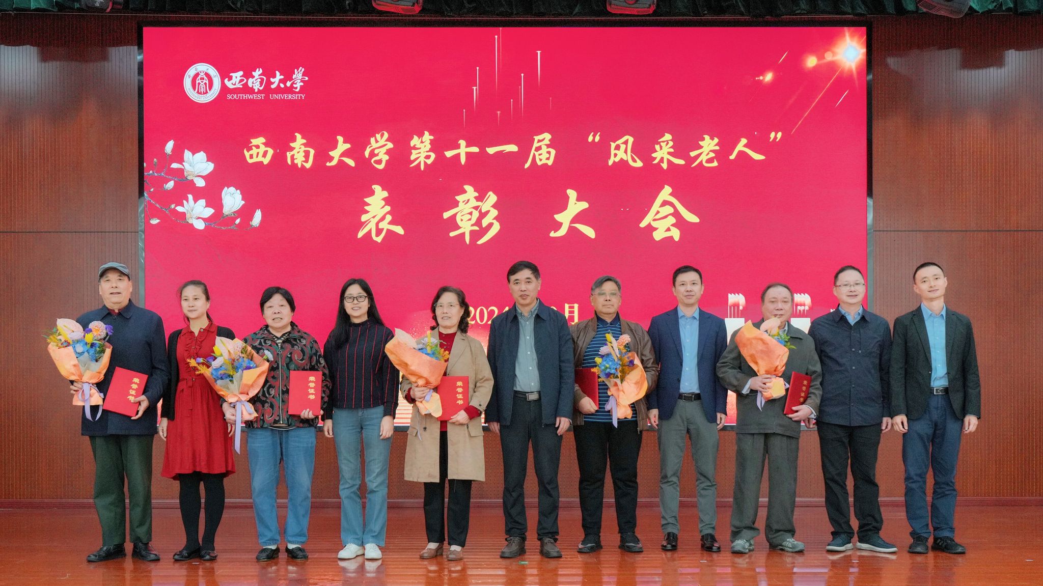 潘洵在讲话中代表学校党委行政向荣获“风采老人”称号的老同志表示热烈祝贺,向广大离退休教职工致以节日问候和崇高敬意。他指出,学校离退休老同志胸怀育人之心、传道之情,在不同领域、以各种方式继续发光发热,助力学校发展,真正诠释了“老有所为、老有所乐”的深刻内涵,展现了新时代老同志的新风采新风貌。他希望老同志们继续发扬终身学习精神,做到老有所学;继续为学校发展、教育事业进步贡献智慧和力量,实现老有所为;保持健康、积极的生活方式,以饱满的精神风貌为社会和家庭贡献力量,享受快乐充实的晚年。他强调,学校相关部门、学院要在政治上更加尊重老同志,在生活上更加关心老同志,在精神上更加关怀老同志,积极为老同志搭平台、设舞台、办实事、解难事,用心用情为老同志提供精准服务。