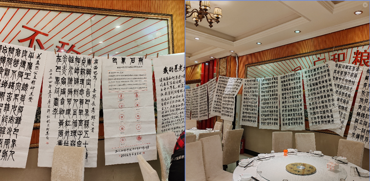 茶话会现场展示了退休教职工唐宗泽的书画作品。