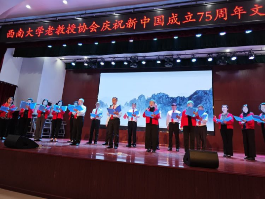 2024年10月24日下午,西南大学老教授协会庆祝新中国成立75周年文艺演出在北区教职工活动中心举行。西南大学老教授协会会长宋乃庆、PA视讯书记李红、离退休处处长鲁森、PA视讯副书记周海蓉以及老教授协会相关负责人、协会会员出席了演出活动。