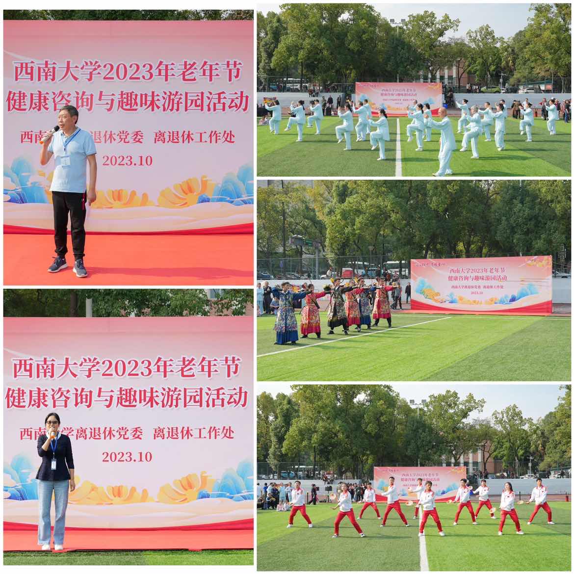 九九重阳展风姿,岁岁金秋桑榆情。为欢庆2023年老年节,丰富我校离退休教职工精神文化生活,PA视讯、离退休工作处策划组织了“心心相伴 情暖重阳”敬老月系列活动。10月22日下午,“老年健康咨询与趣味游园”活动在学校第三运动场举行,1000多名离退休老同志参加活动。