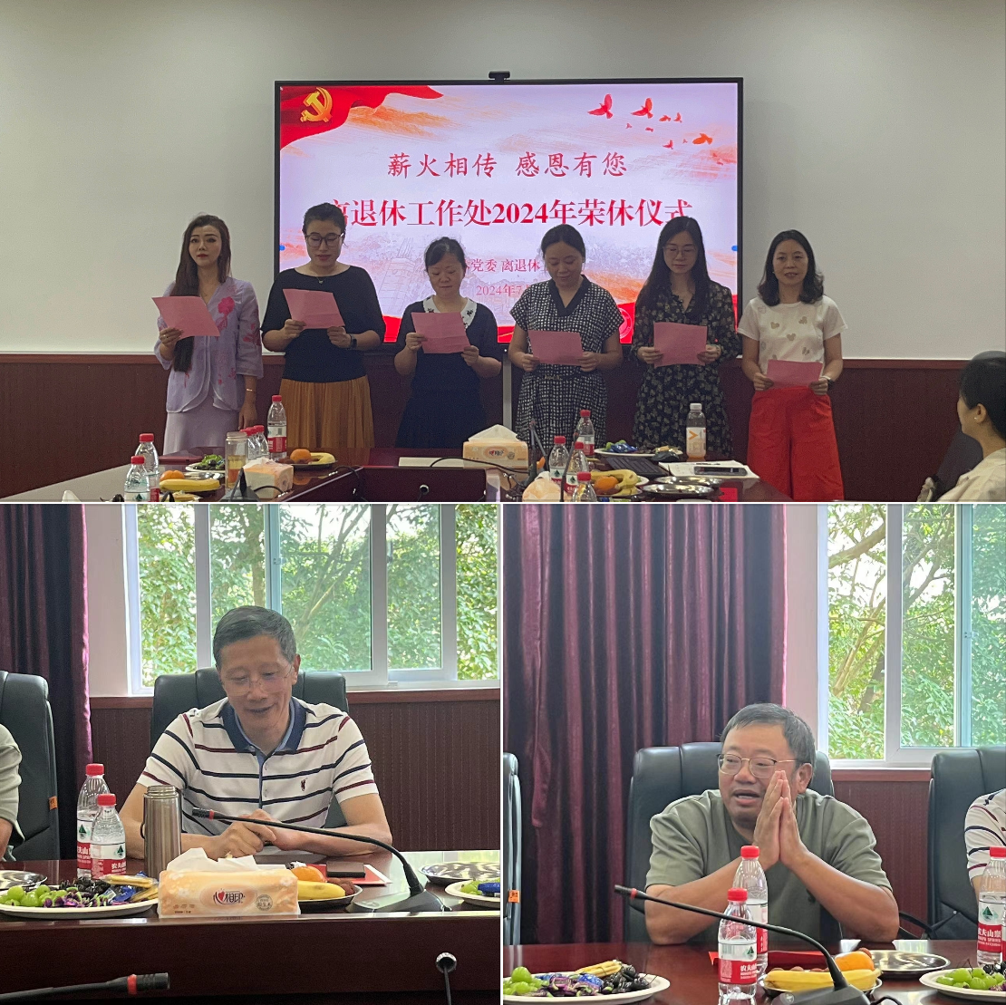 全体职工也饱含深情地回忆了与2位老领导共事的一段段难忘的故事,一幕幕美好的场景,纷纷表示将继承和发扬老同志勇于担当、甘于奉献的宝贵精神,挑好挑实新担子,为我校离退休工作高质量发展积极贡献力量。