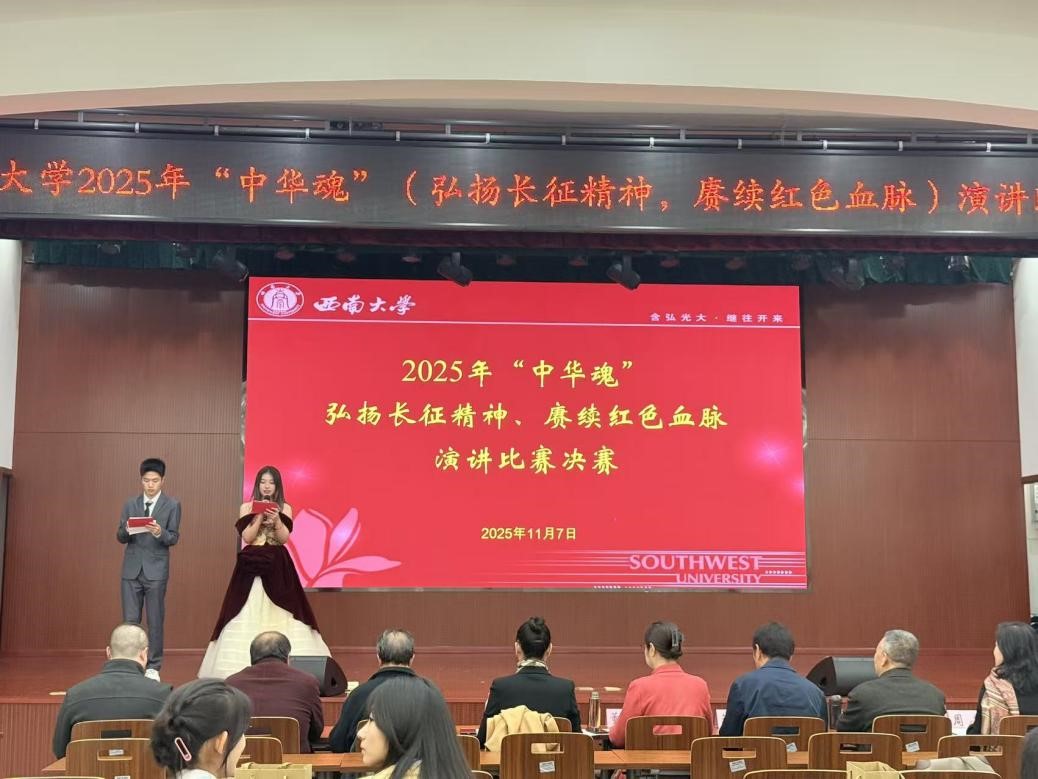 为深入传承弘扬伟大长征精神,教育引导我校青年学子在新时代长征路上勇担使命、奋勇争先,在前期各学院(部)的积极支持下,经过择优推荐与专家严格评审,25位选手从众多参赛者中脱颖而出站上决赛舞台,以青春之声传递长征力量,用赤诚之心诠释红色担当。决赛现场,气氛热烈而庄重。25位选手紧扣主题,或深情回溯“半条被子”承载的军民鱼水情、“四渡赤水”彰显的革命智慧,从波澜壮阔的长征故事中汲取信仰力量;或结合自身参与红色教育实践、探访革命旧址的亲身经历,分享感悟与思考,表达对革命先辈的崇高敬仰;或立足新时代青年使命,畅谈如何将长征精神融入学习生活、转化为奋斗动力,展现出新时代西大学子“以青春之我,担时代之责,筑青春家国”的坚定信念与昂扬风貌。选手们的演讲感情真挚、言辞恳切,时而慷慨激昂、催人奋进,时而娓娓道来、引人深思,赢得现场评委与观众阵阵掌声,让红色基因在交流中传承,让长征精神在共鸣中升华。