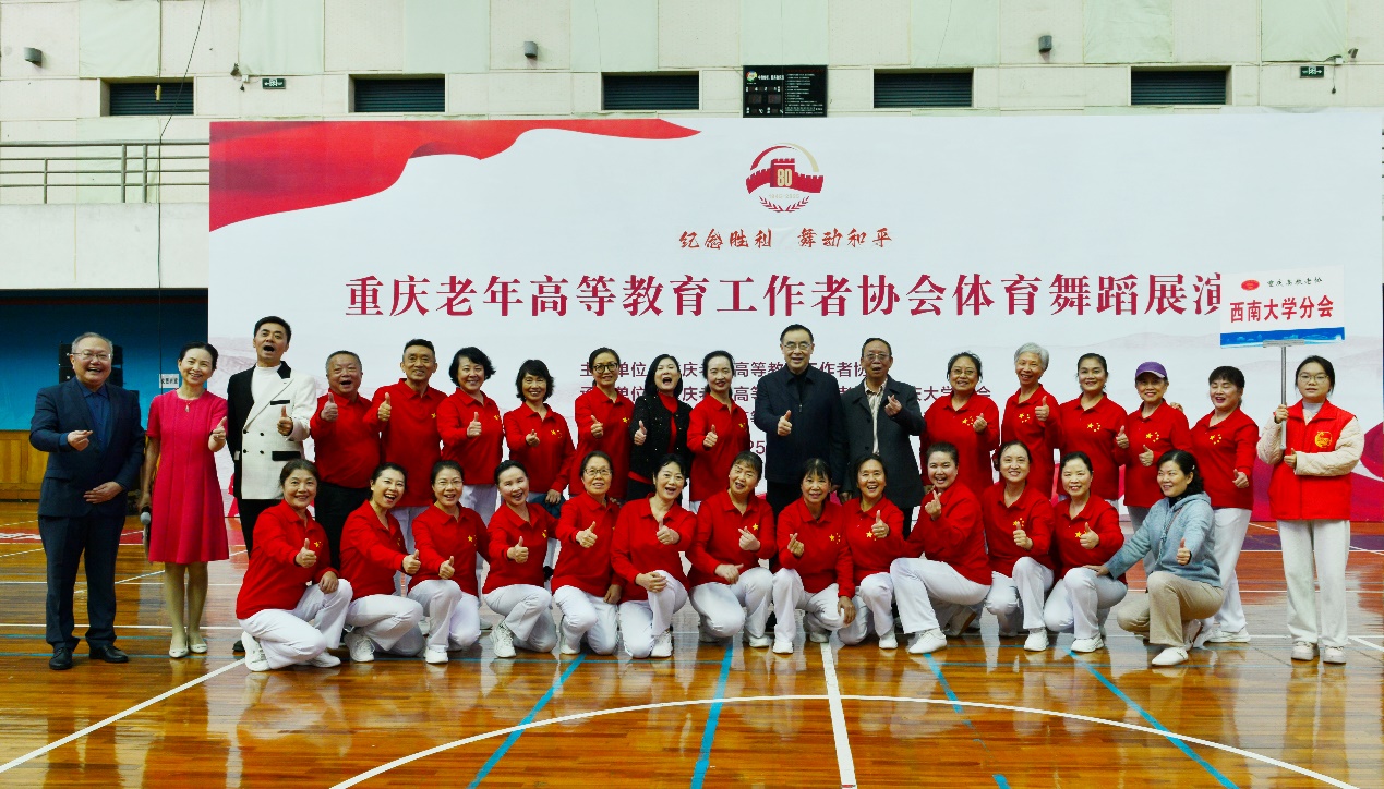11月4日,重庆老年高等教育工作者协会以“纪念胜利、舞动和平”为主题,在重庆大学举办纪念中国人民抗日战争暨世界反法西斯战争胜利80周年体育舞蹈展演。由25名高教老协会员组成的西南大学分会代表队和来自全市各高校分会的老年教育工作者齐聚一堂,用舞姿传承抗战精神,展现健康昂扬的晚年风貌。高教老协西南大学分会会长、原西南大学党委副书记徐晓黎应邀出席,西南大学PA视讯书记余小蓉陪同参加。