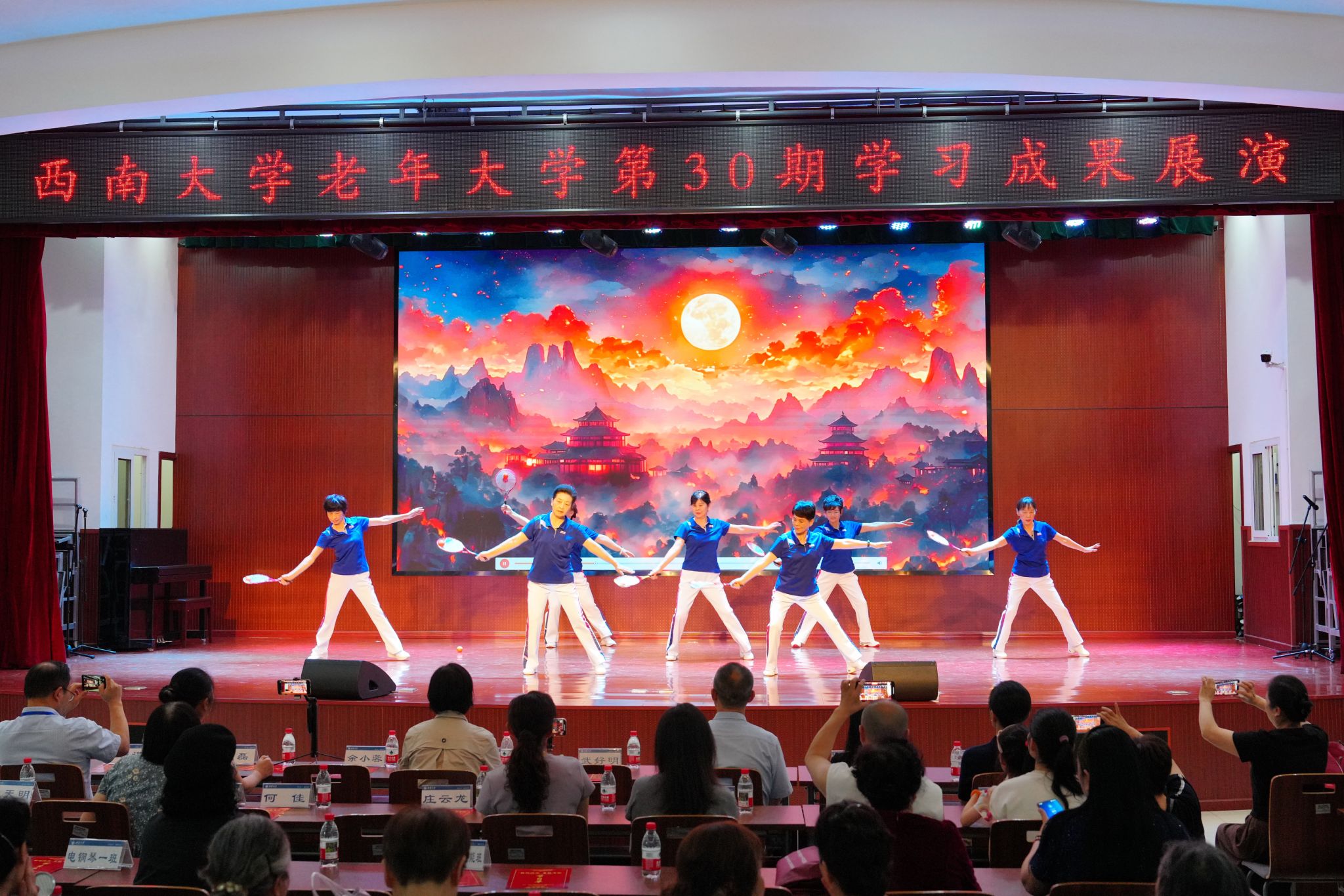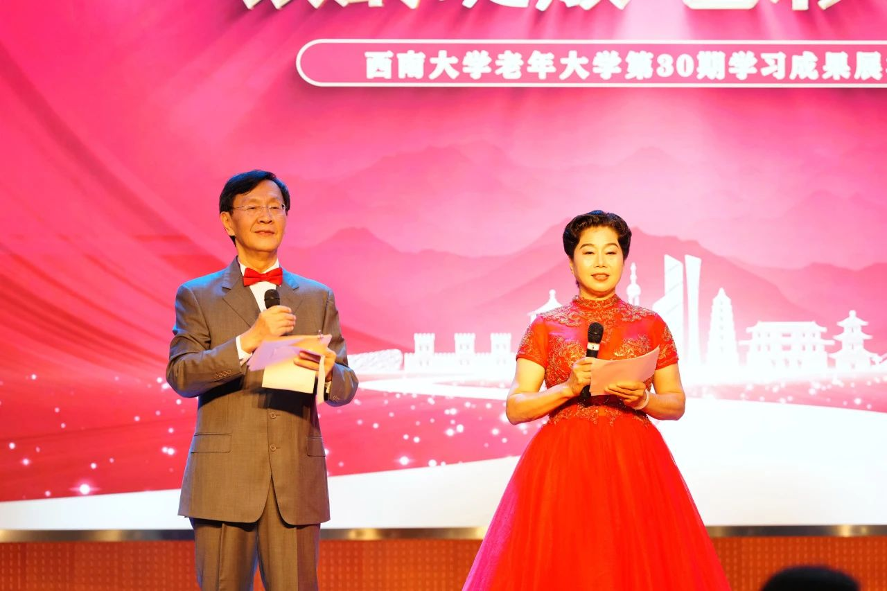 6月24日下午,西南大学老年大学"银龄绽放 艺彩飞扬"第三十期学习成果展演暨书画摄影展在教职工活动中心隆重举行。本次活动通过文艺汇演和书画摄影作品展两大板块,集中展示了老年大学学员们的学习成果,生动诠释了新时代西大老年人"老有所学、老有所乐、老有所为"的精神风貌。学校党委副书记武好明,北碚区老年大学常务副校长肖玉勤一行出席活动。