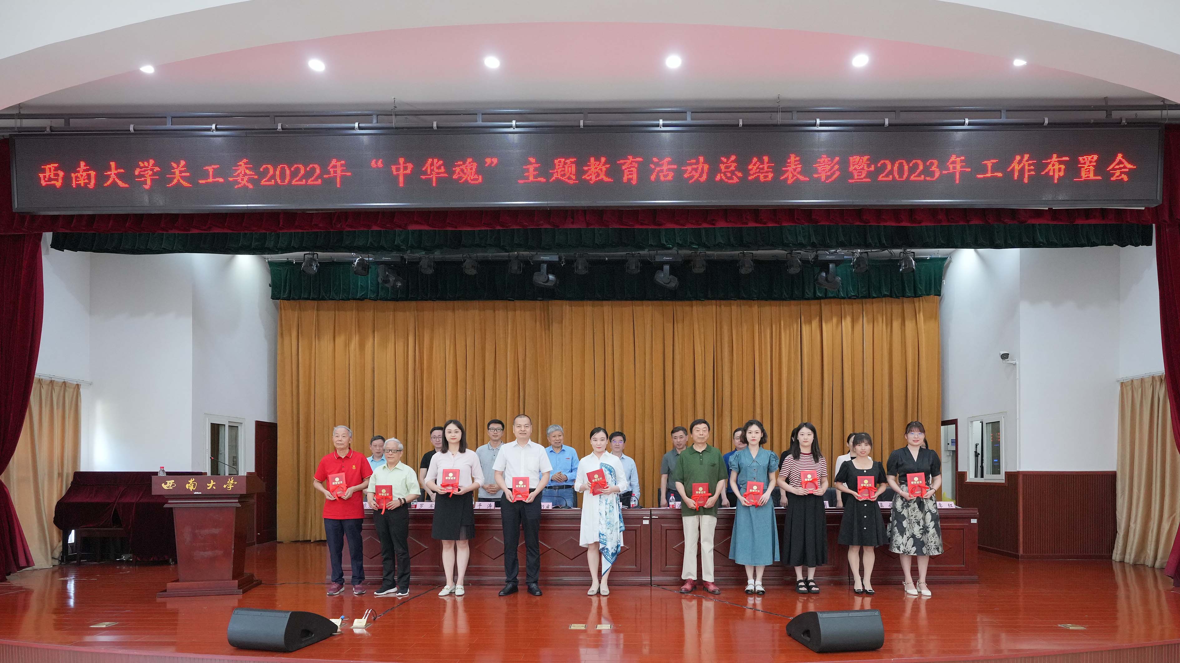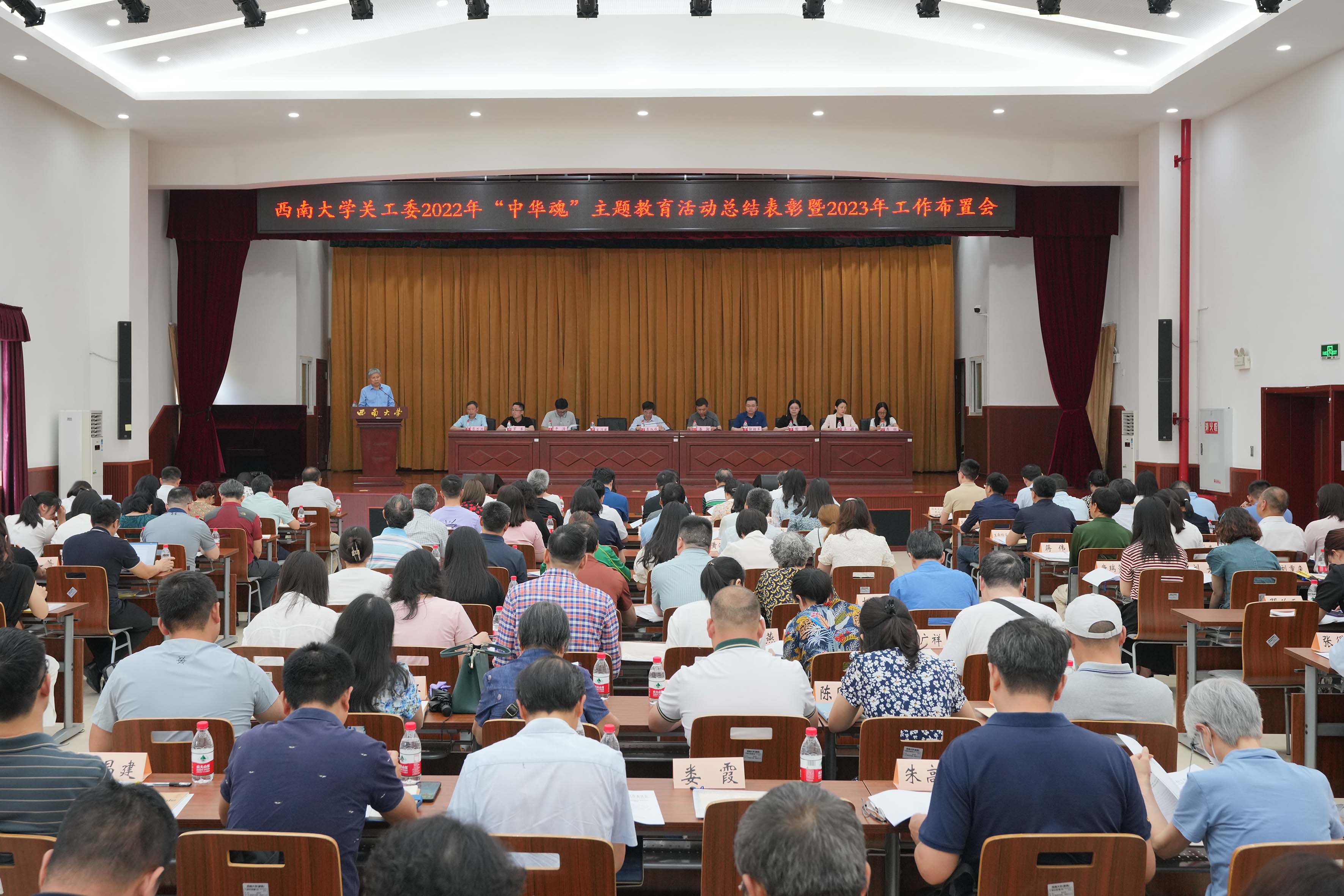 6月12日下午,学校召开2022年“中华魂”主题教育活动总结表彰暨2023年工作布置会。学校党委书记、关工委主任李旭锋,关工委常务副主任宋乃庆出席会议。学校党委副书记、关工委副主任潘洵主持会议。相关职能部门负责人,各学院(部)党委书记、关工委主任,常务副主任,联络员,校关工委志愿者服务团队长以及获奖师生代表等130余人参加会议。