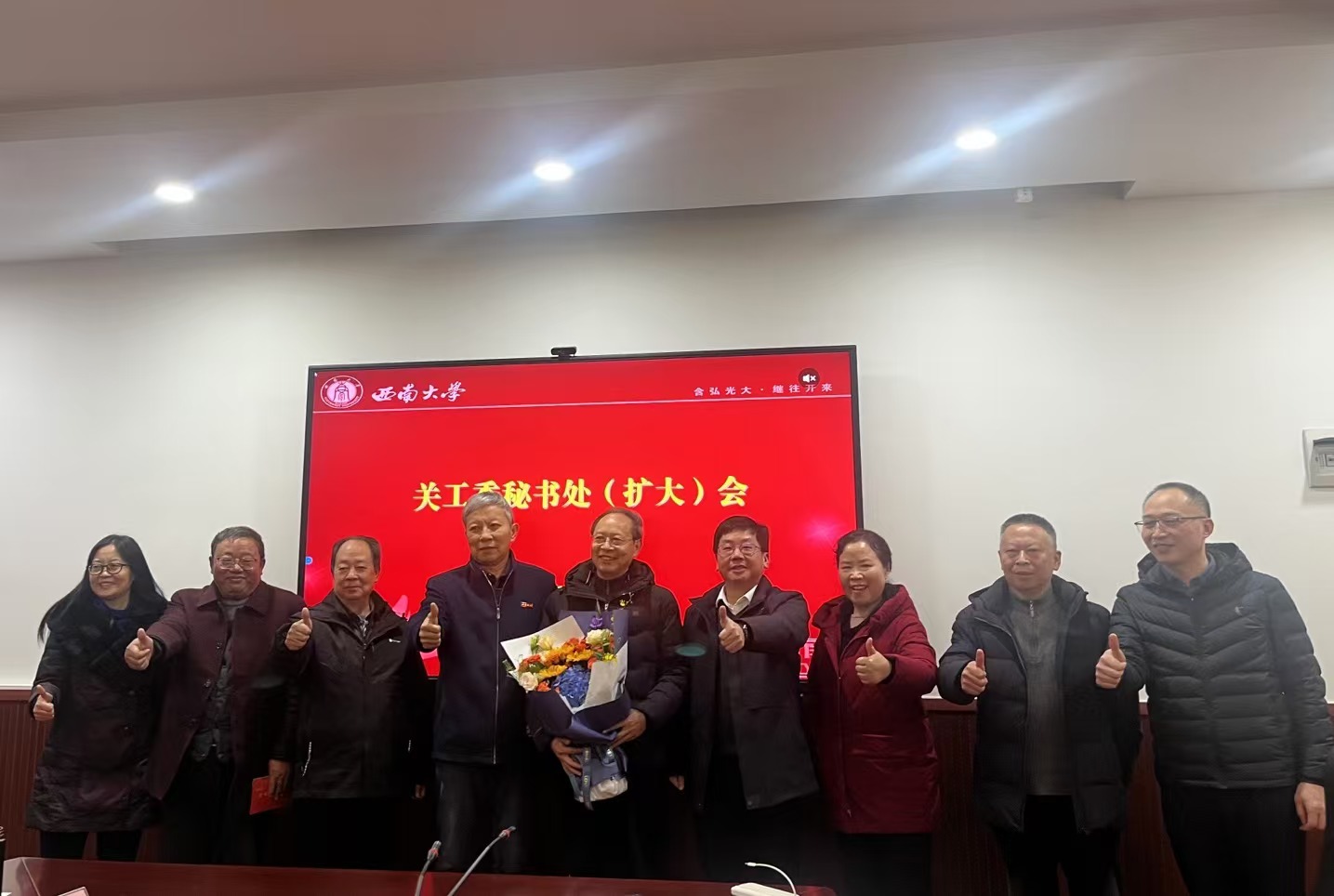 12月24日,学校在桃花山离退休教职工活动中心召开关工委秘书处(扩大)会。副校长、关工委秘书长邹芙都,关工委常务副主任宋乃庆出席并讲话,人力资源部 党委教师工作部、团委、党委学生工作部、研究生院、PA视讯 离退休工作处等职能部门负责人以及秘书处全体成员参加会议。会议由离退休工作处处长鲁森主持。